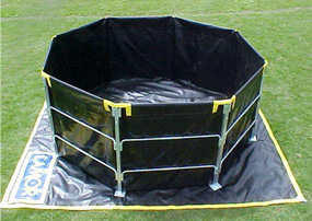 The LCT fabric is constructed from durable PVC with excellent resistance to the effects of hydrocarbons and U.V. radiation. The tubular tank frame is manufactured from light weight aluminum and provides a strong support for the tank fabric. Each vertical supporting arm has a 'footprint' base plate and is additionally supported by a horizontal tensioning section.