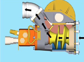The Hidrostal design centrifugal screw combines the properties of the screw pump with those of the centrifugal pump, which enables handling of medium to high viscosity liquids while limiting the effects of emulsification or clogging. Both the centrifugal-screw and drive flange are bolted and keyed onto the hydraulic motor shaft respectively, with the drive flange transmitting power to the centrifugal screw via a lock pin.